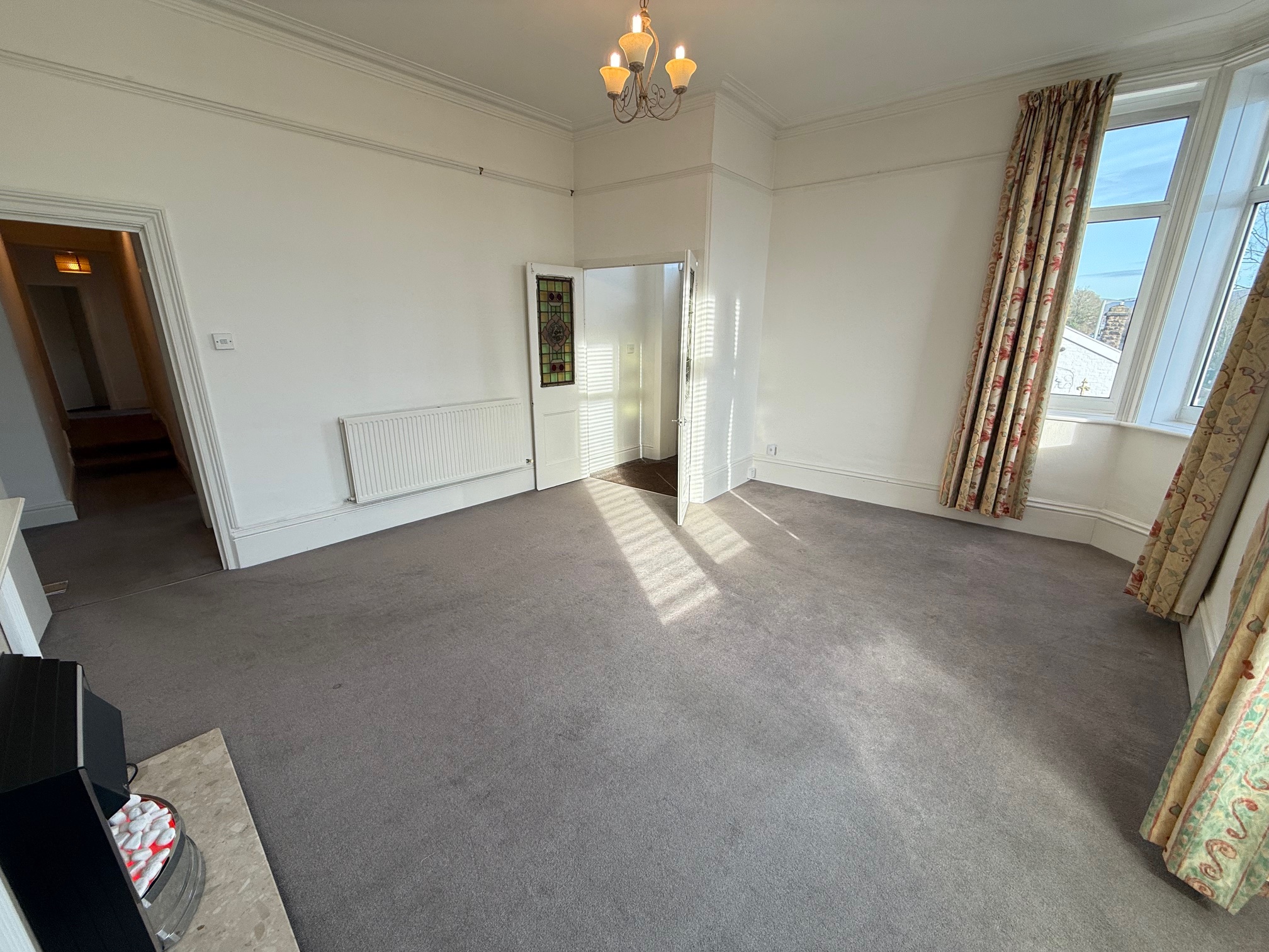 A modernised and well presented 2 bedroom 1st floor flat. The accommodation is spacious throughout and comprises of entrance vestibule, spacious lounge with period features, fireplace with a freestanding electric fire, inner hallway with storage, a modern fitted kitchen with built in oven, hob, extractor & fridge freezer, a modern fitted 3 piece shower room and 2 good sized bedrooms with freestanding wardrobes. The property benefits from gas central heating via a combi boiler, upvc double glazing and outside an enclosed patio to the rear and off road parking to the side. Viewing recommended!